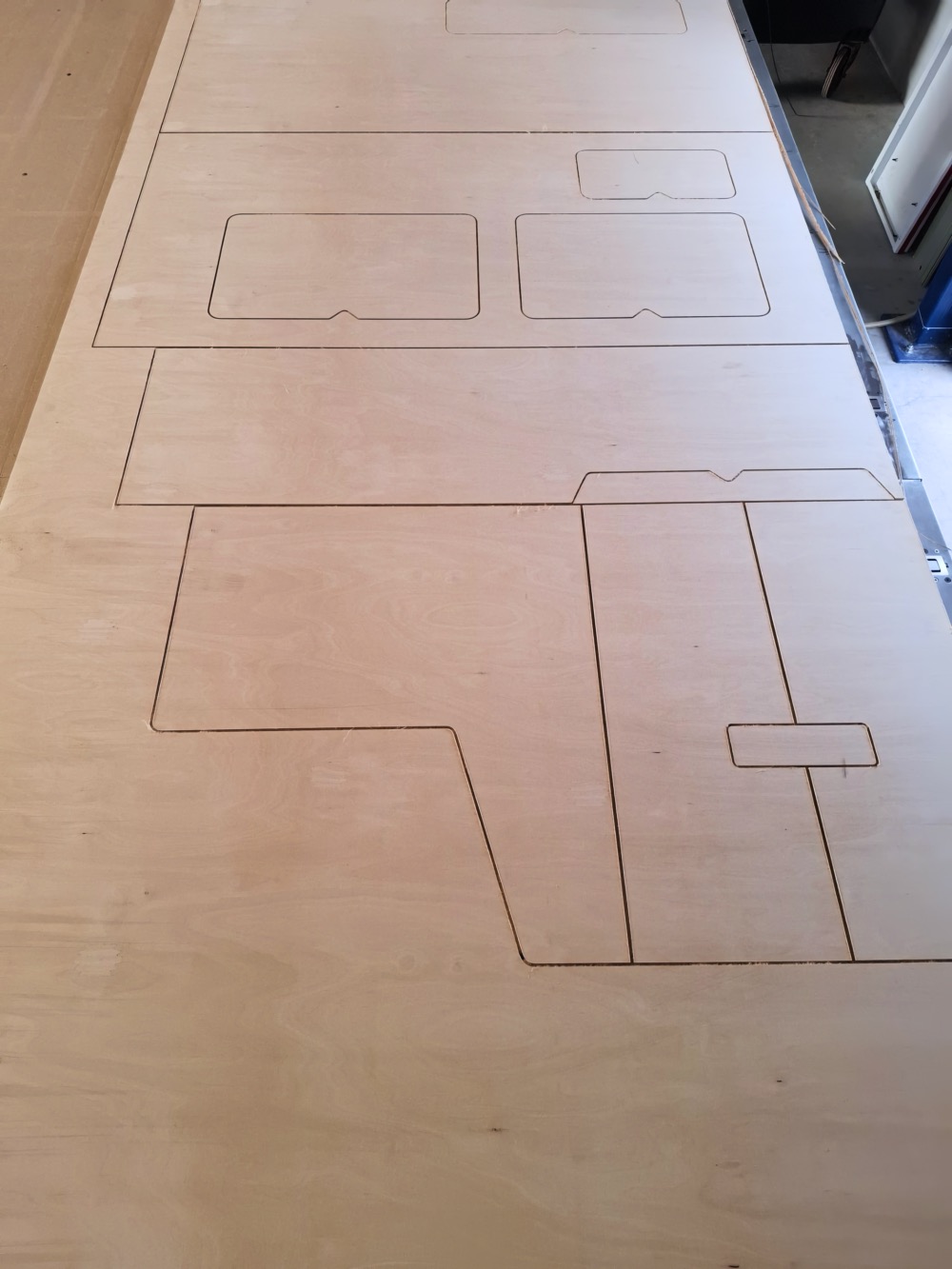 [foto-plaatsing] Foto: CNC-freesmachine in actie bij het bewerken van een multiplex paneel in Drachten.